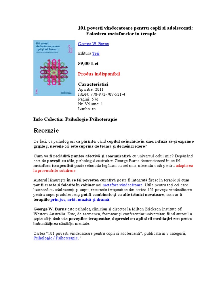 101 Povesti Vindecatoare Pentru Copii Si Adolescenti Folosirea Metaforelor In Terapie George W Burns