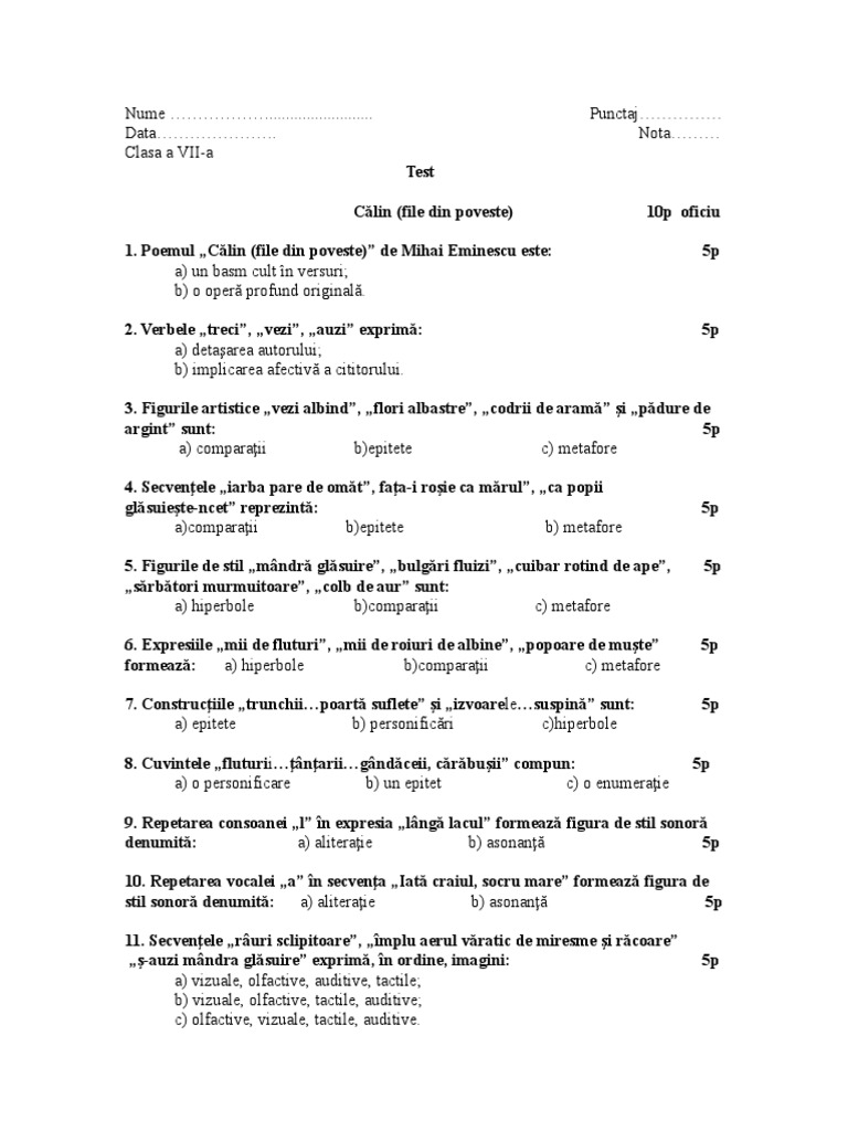 Va Rog Mult Imaginile Artistice Si Figurile De Stil Din Calin File Din Poveste Brainly Ro