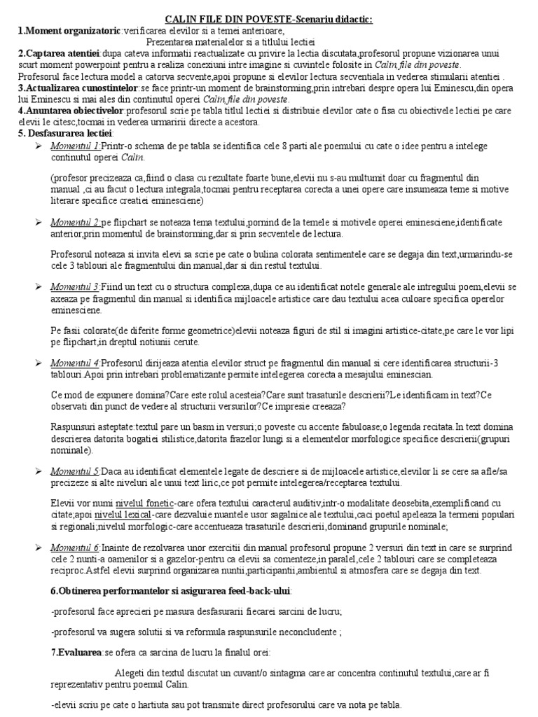 Călin File Din Poveste De Mihai Eminescu Argumentare Descriere