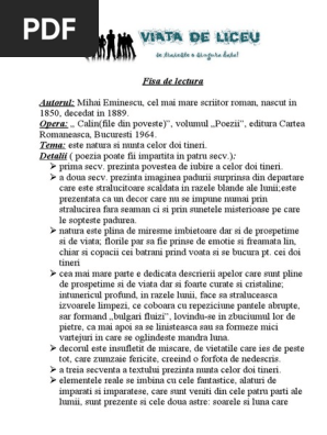 Fisa De Lectura La Poemul Calin File Din Poveste