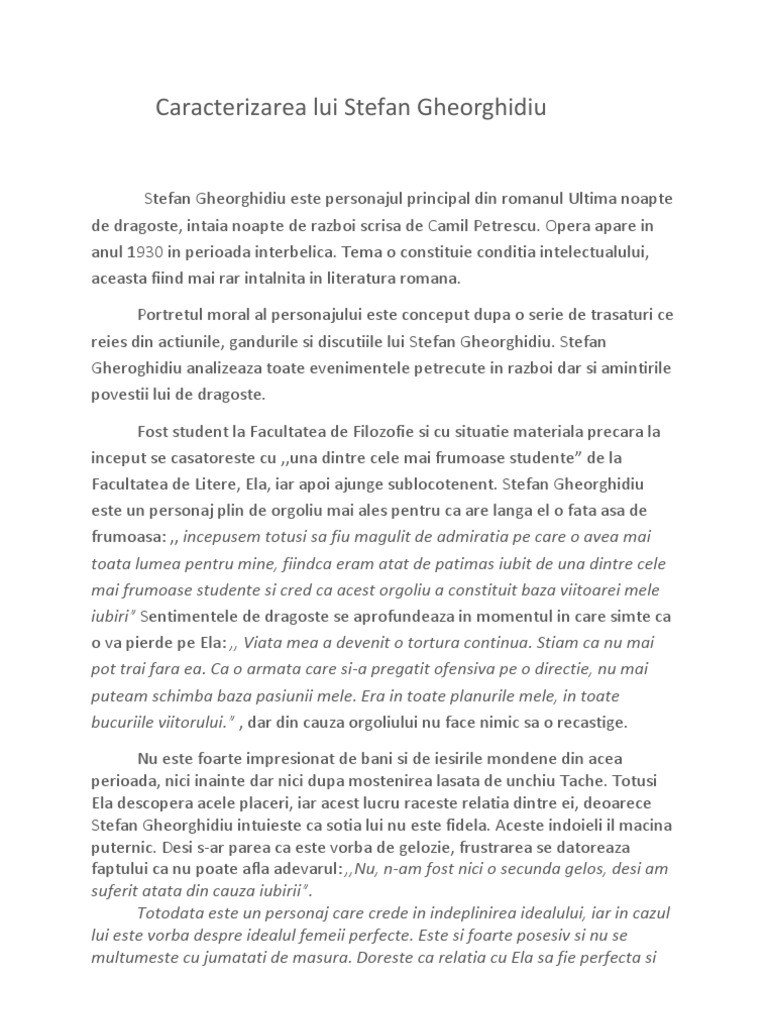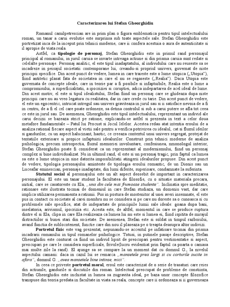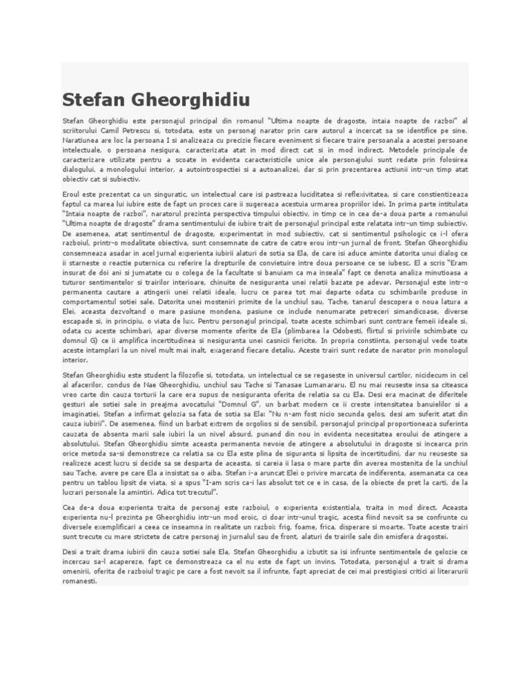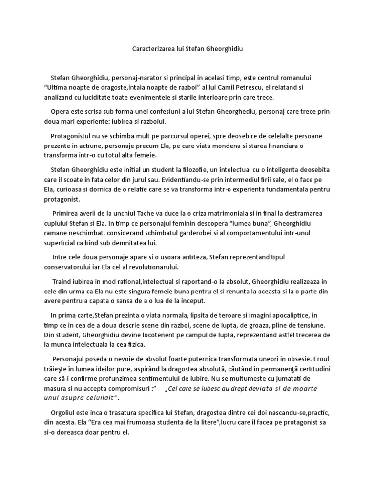 Doc Caracterizare Stefan Gheorghidiu Ultima Noapte De Dragoste Intaia Noapte De Razboi De Camil Petrescu Elena Grigorescu Academia Edu