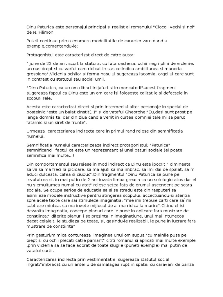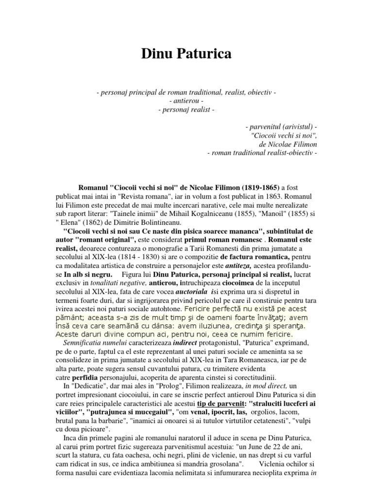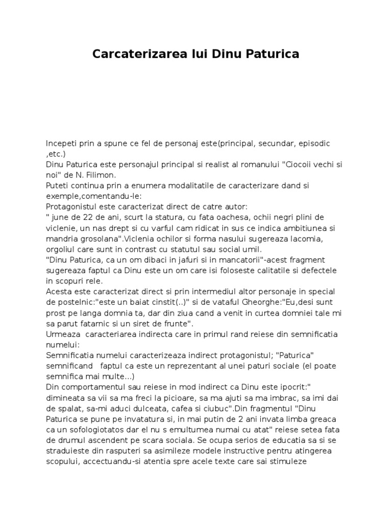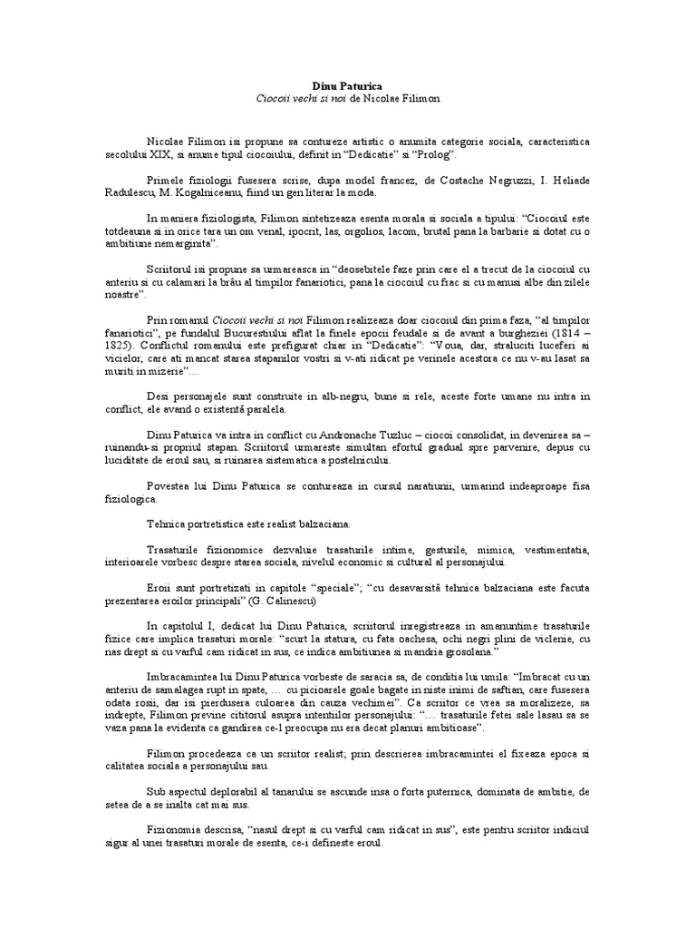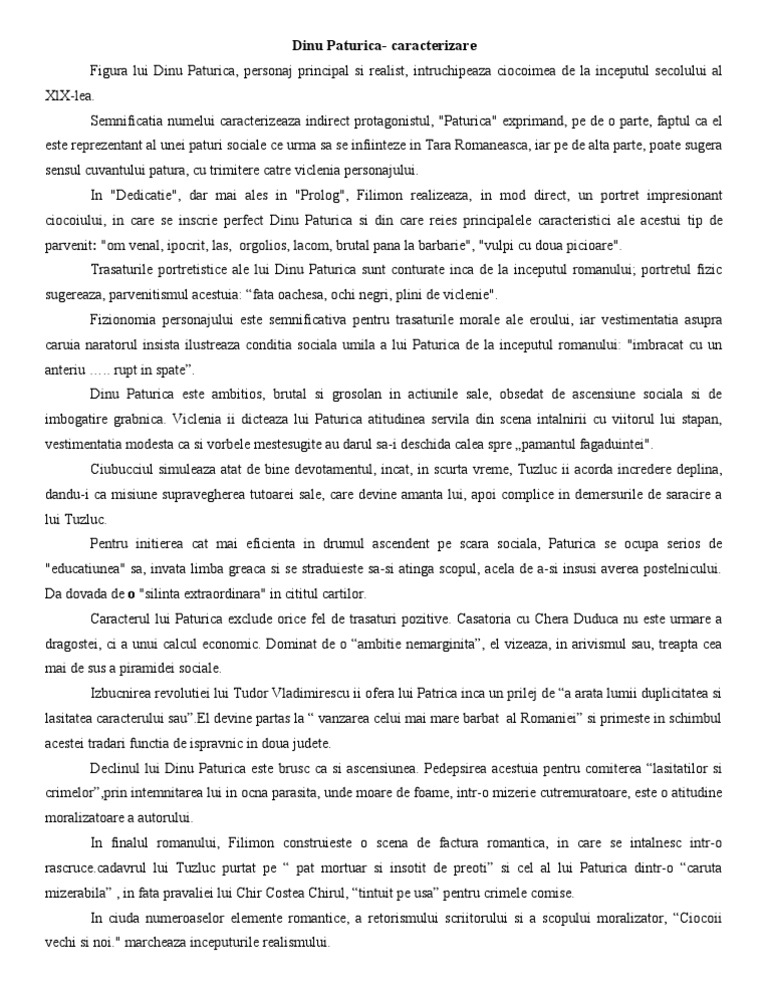 Caracterizare Ciocoii Vechi Si Ciocoii Noi Caracterizarea Lui Dinu Paturica 117589 Graduo