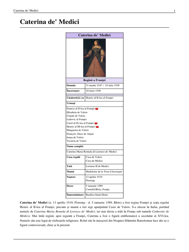 Caterina De Medici Drama Unei Femei Ambiţioase