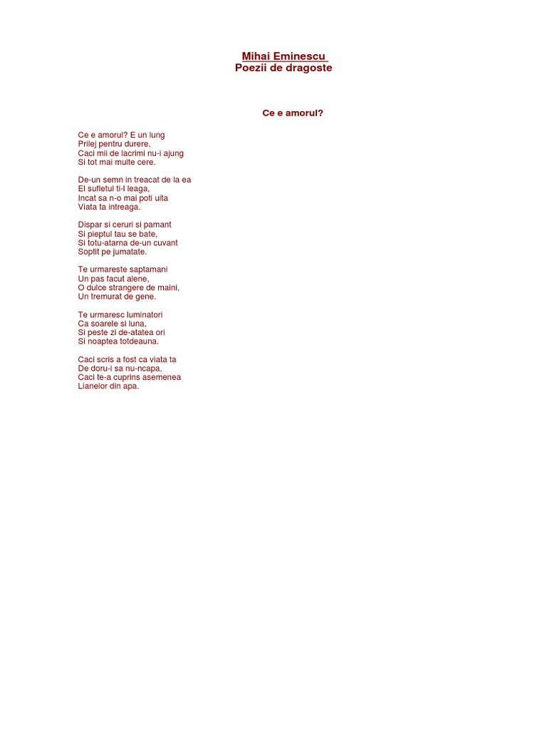 Mihai Eminescu Poezii De Dragoste Ce E Amorul