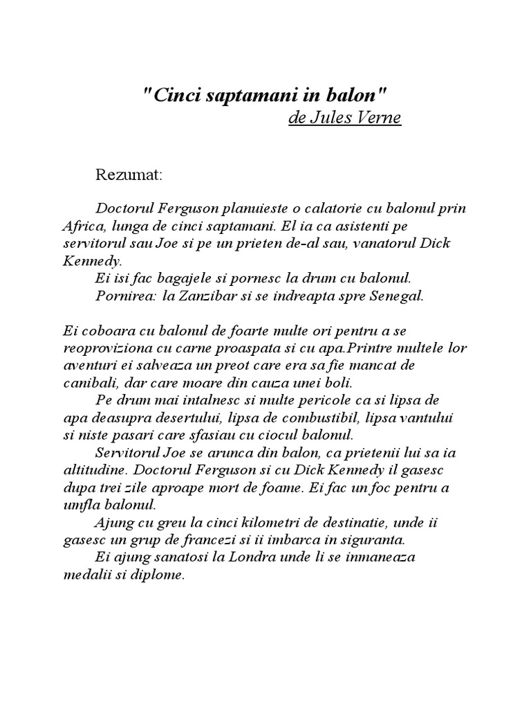 Cinci Saptamani In Balon Jules Verne Depozitdecarte Ro