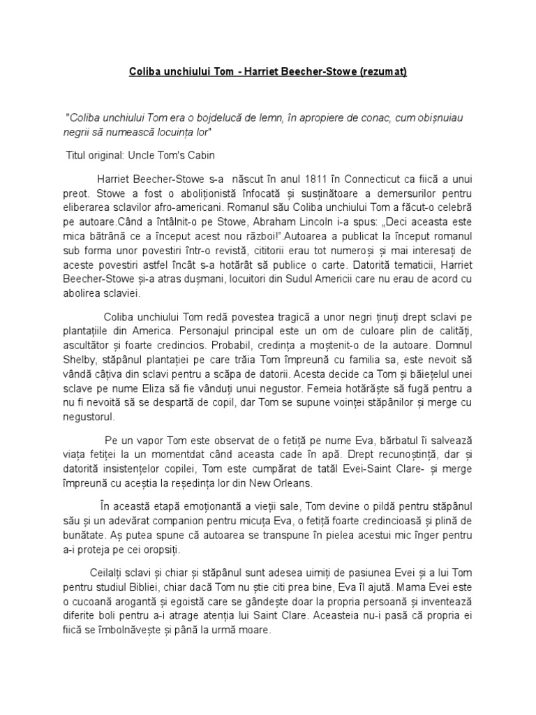 Harriet Beecher Stowe Coliba Unchiului Tom Pdf