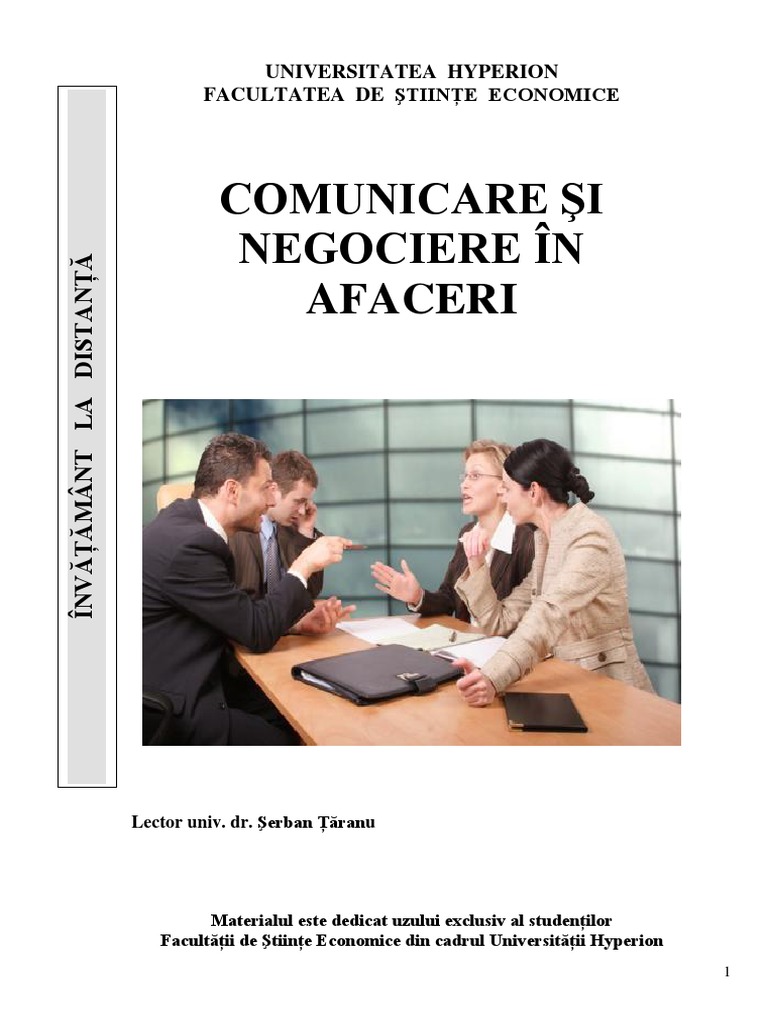 Comunicare Si Negociere In Afaceri Curs I D 2016