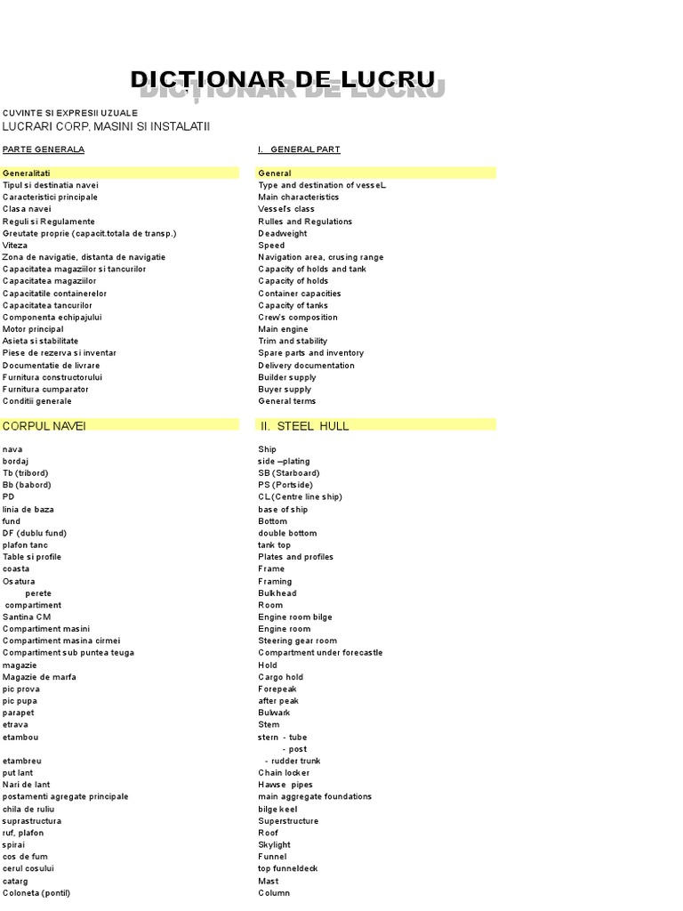 Dictionar De Lucru Engleza Deck Ship Diesel Engine
