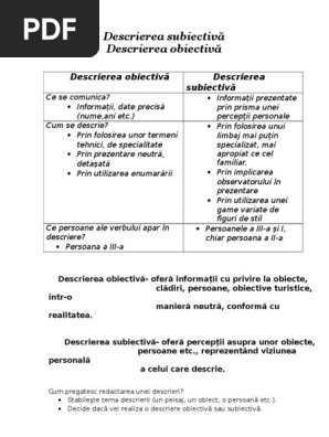 Descrierea Obiectivă Descrierea Subiectivă