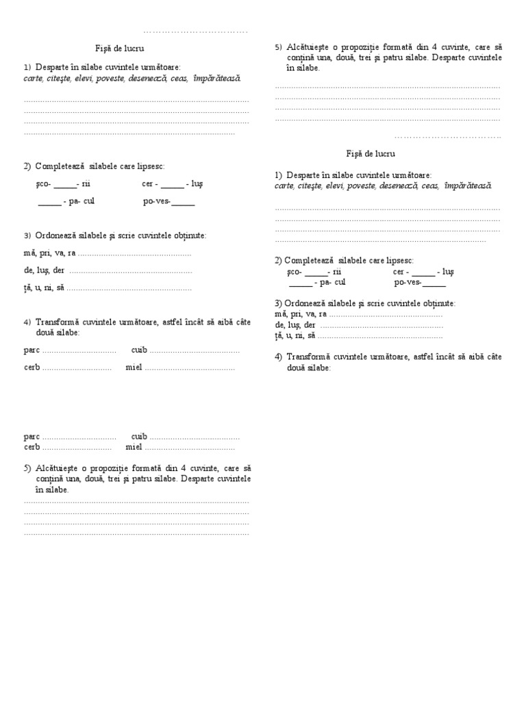 Fise De Lucru Gradinita Fisa De Lucru Clr Clasa Pregatitoare Despartirea Cuvintelor In Silabe Repr Kids Math Worksheets Math For Kids Alphabet Writing