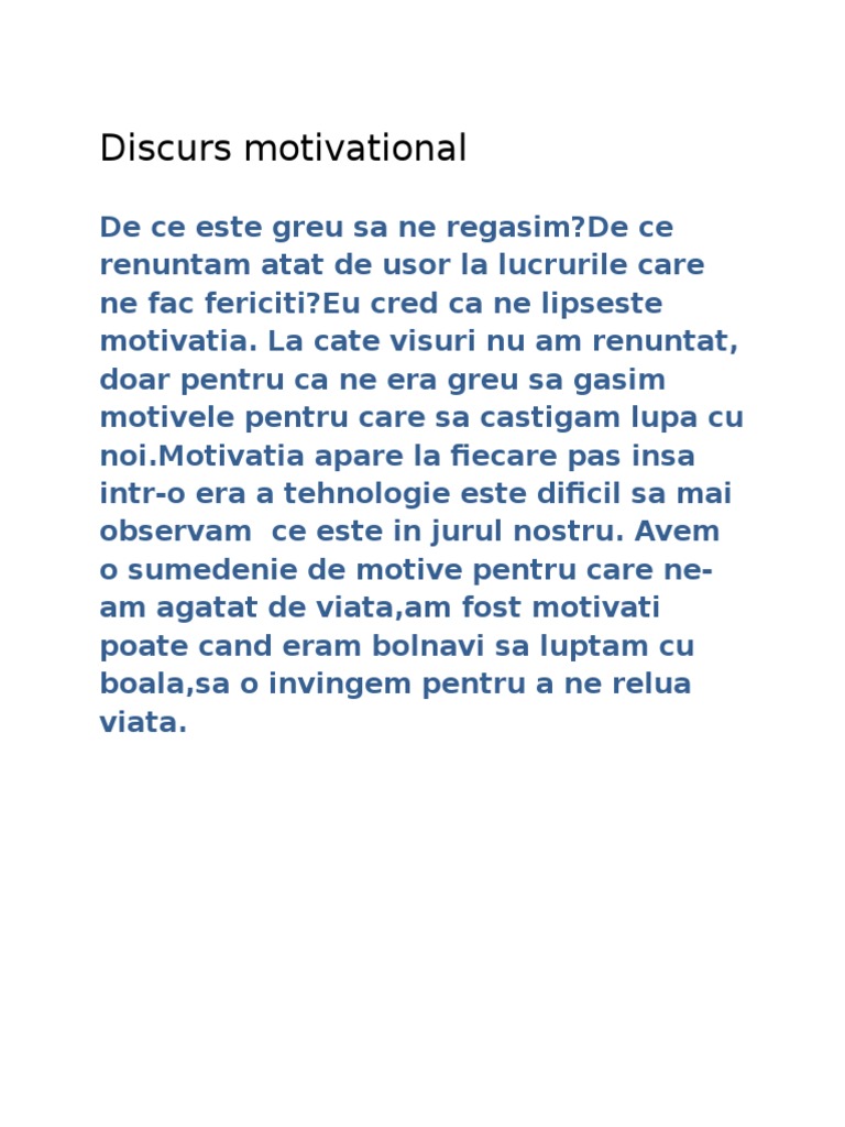 Discurs motivational despre viata. Câteodată parcă ne pierdem acest. Citate citate motivaționale trimite citatul tau favorit. Instinctul nostru de artiști ne spune că viața merită trăită nu avem nevoie să ni se dovedească asta. Required please choose the most appropriate category.
