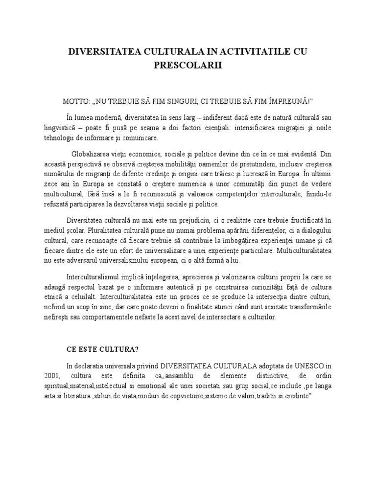 Modalități De Realizare A Diversității Culturale In Activită By Monica Grecu