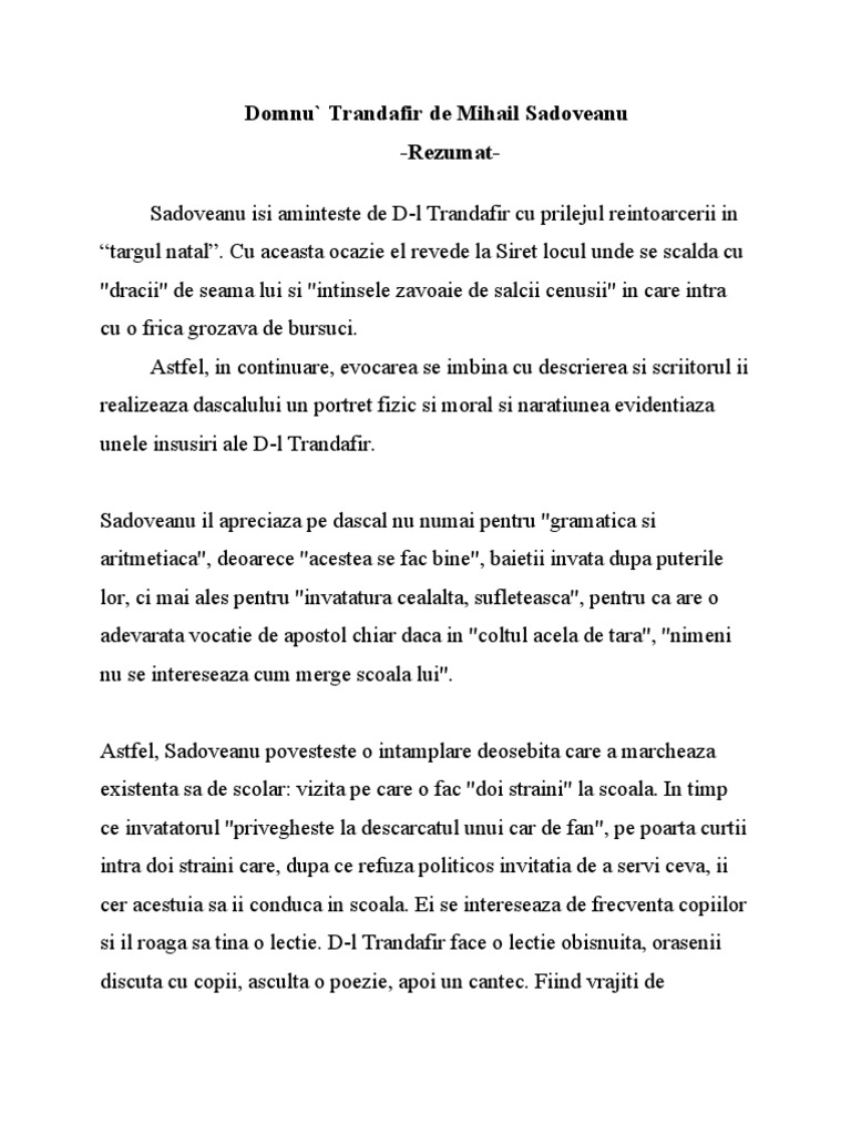 Doc Domnu Trandafir De Mihail Sadoveanu Model De Caracterizare Anita Andreca Academia Edu