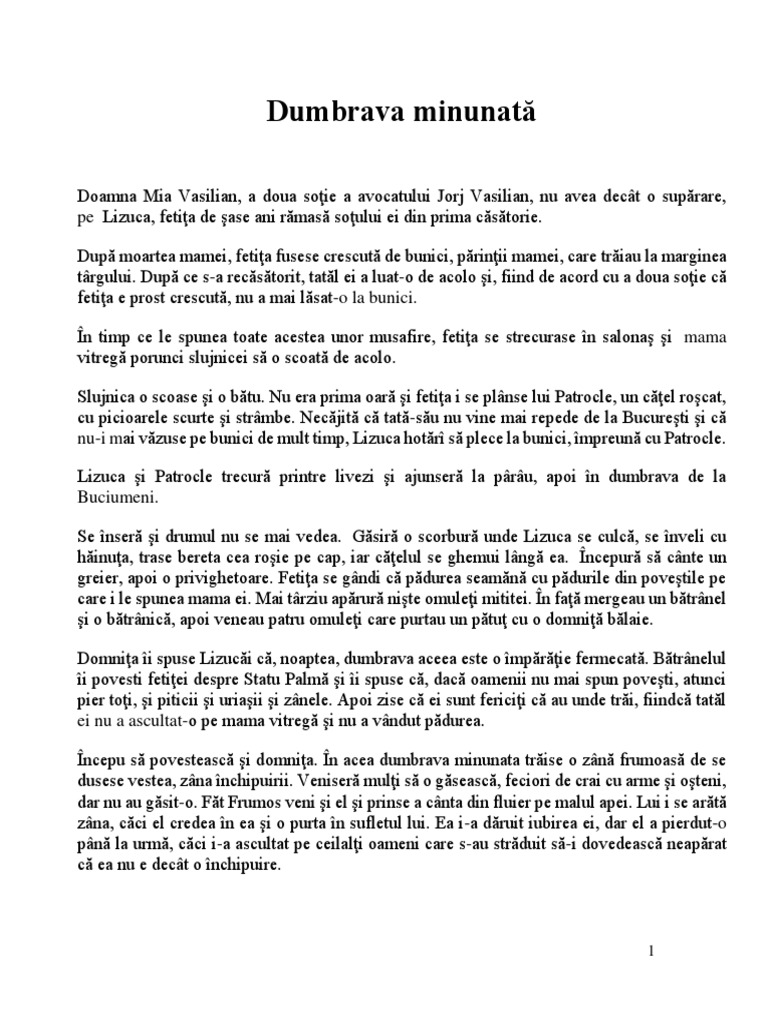 Dumbrava Minunata De Mihail Sadoveanu Pdf Document