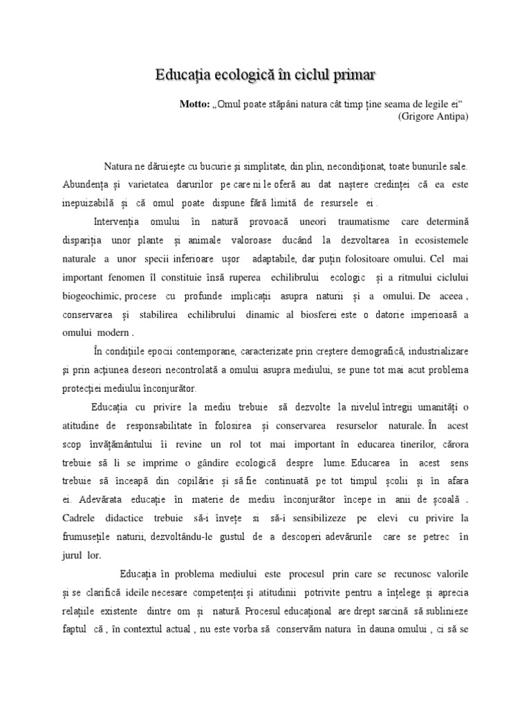 Educația Ecologică In Ciclul Primar