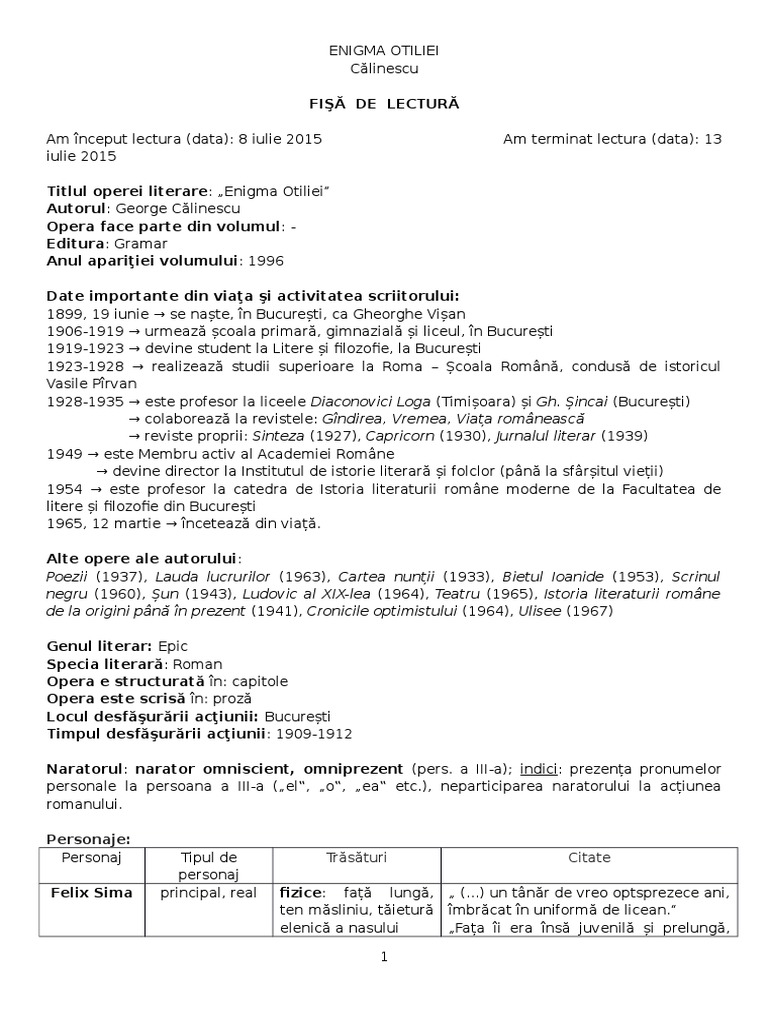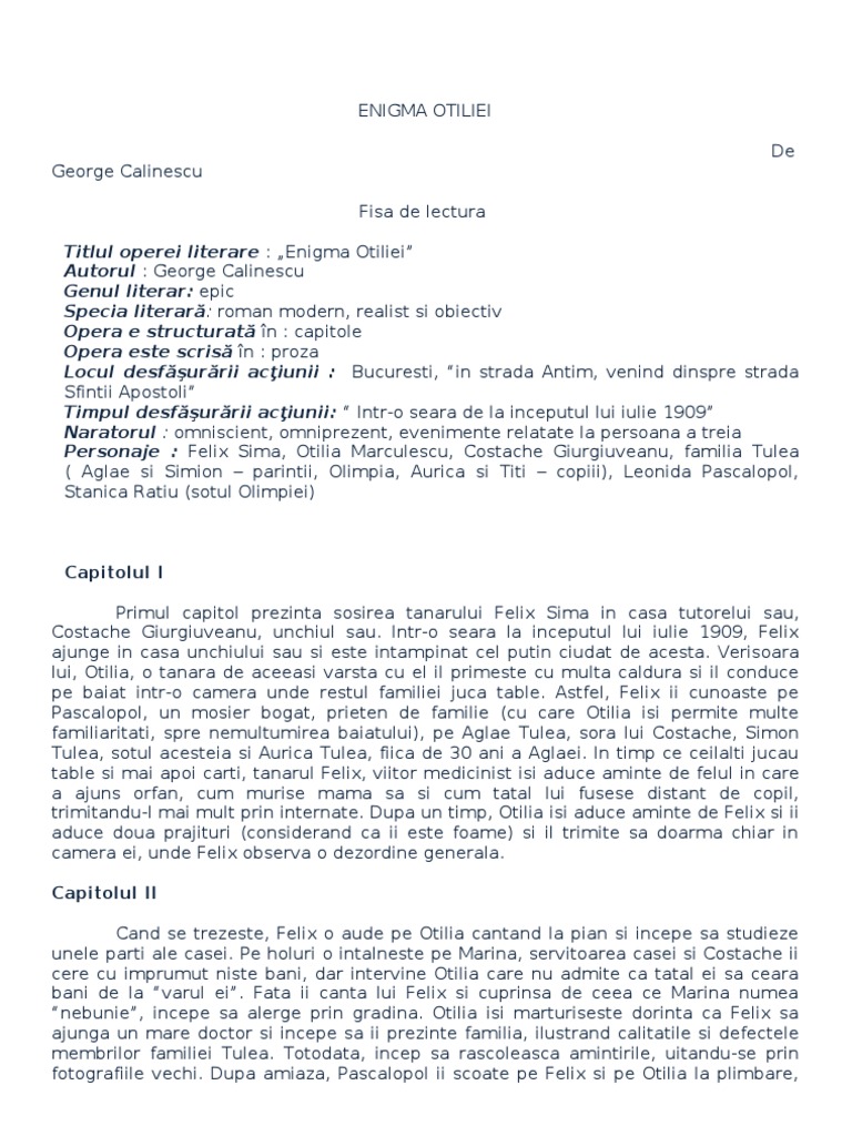Enigma Otiliei Fisa De Lectura Pdf Free Download