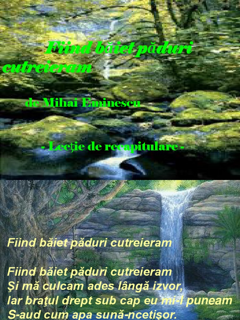 Fiind Băiet Păduri Cutreieram De Mihai Eminescu Lecţie De Recapitulare