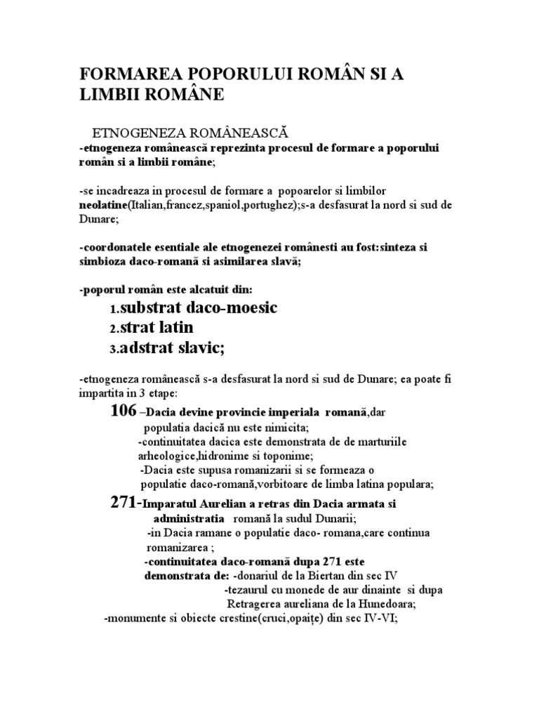 Formarea Poporului Roman Si A Limbii Romane Istorii Regăsite