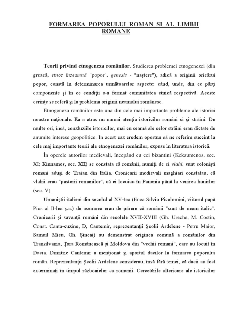 Formarea Poporului Roman Si A Limbii Romane Istorii Regăsite