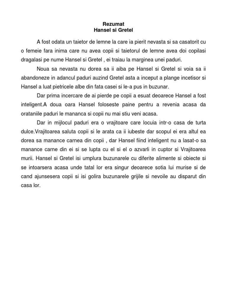 Rezumat Basm Hansel Si Gretel Rezumate Cărți Citeste Cărți Online Pdf Caracterizări Referate Si Comentarii Cărți