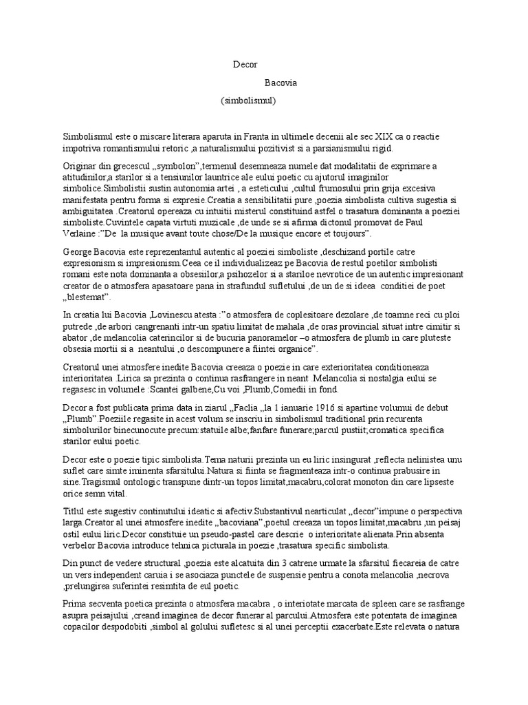 George Bacovia Semnificația Titlului Termenul Decor Facebook