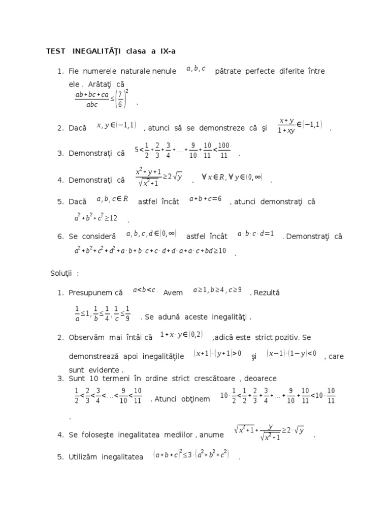 Inegalitati Clasa A Ix A Universulcartii Ro