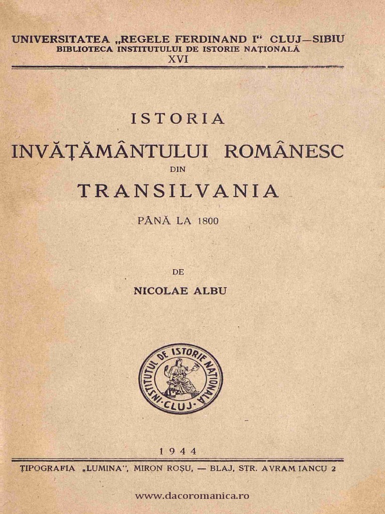 Istoria Invăţămantului Romanesc Din Transilvania Pană La 1800 Pdf