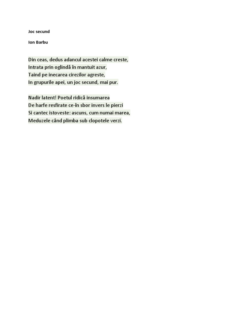 Joc Secund De Ion Barbu