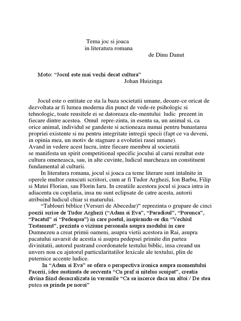 Referat Joc Si Joaca In Literatura Romana 338377 Graduo