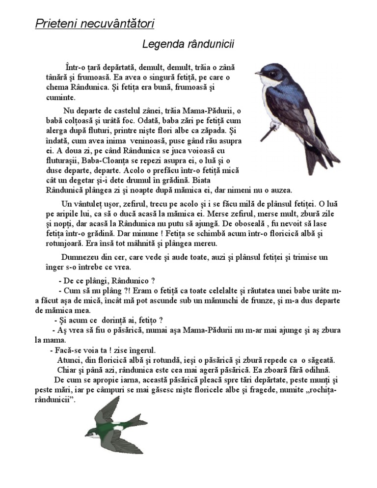 Povestiri Pe Scurt De Lecturi școlare Legenda Randunicii