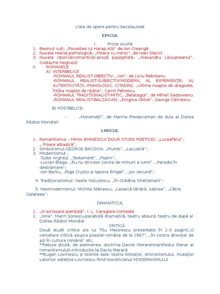 Programa Nouă Bacalaureat 2020 Limba și Literatura Romană Edupedu