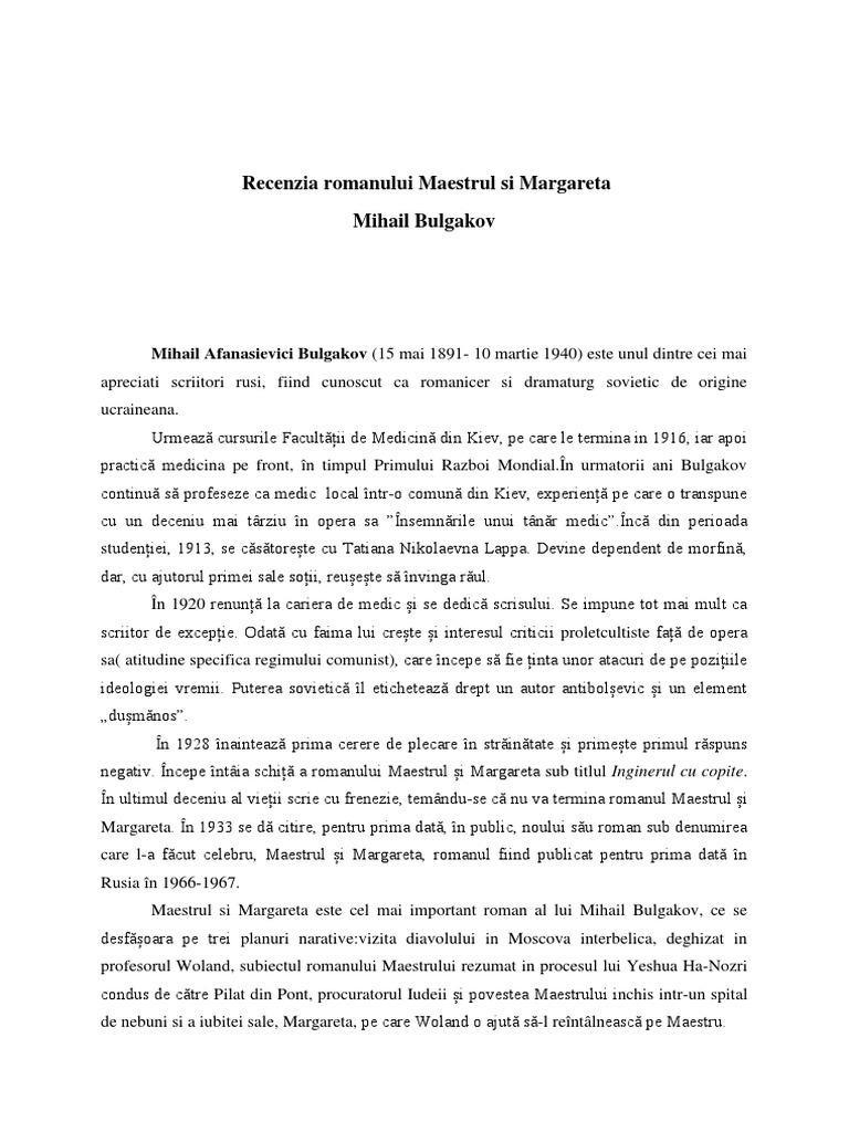 Recenzie Maestrul Si Margareta De Mihail Bulgakov