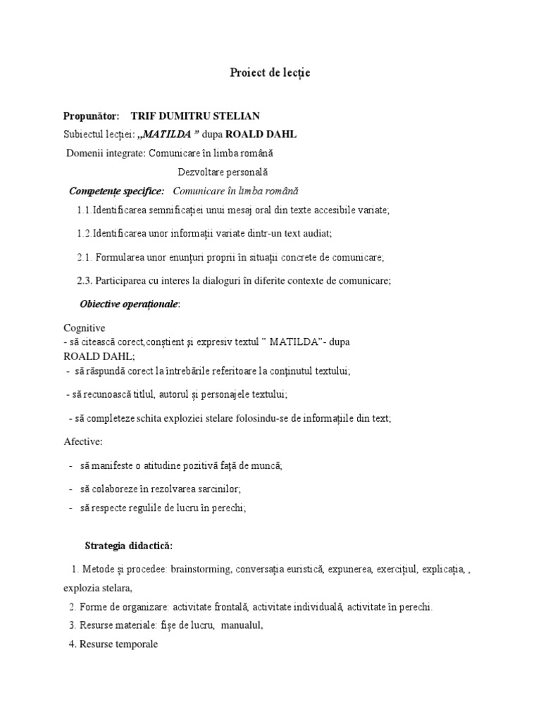 Matilda De Roald Dahl Machete Didactice