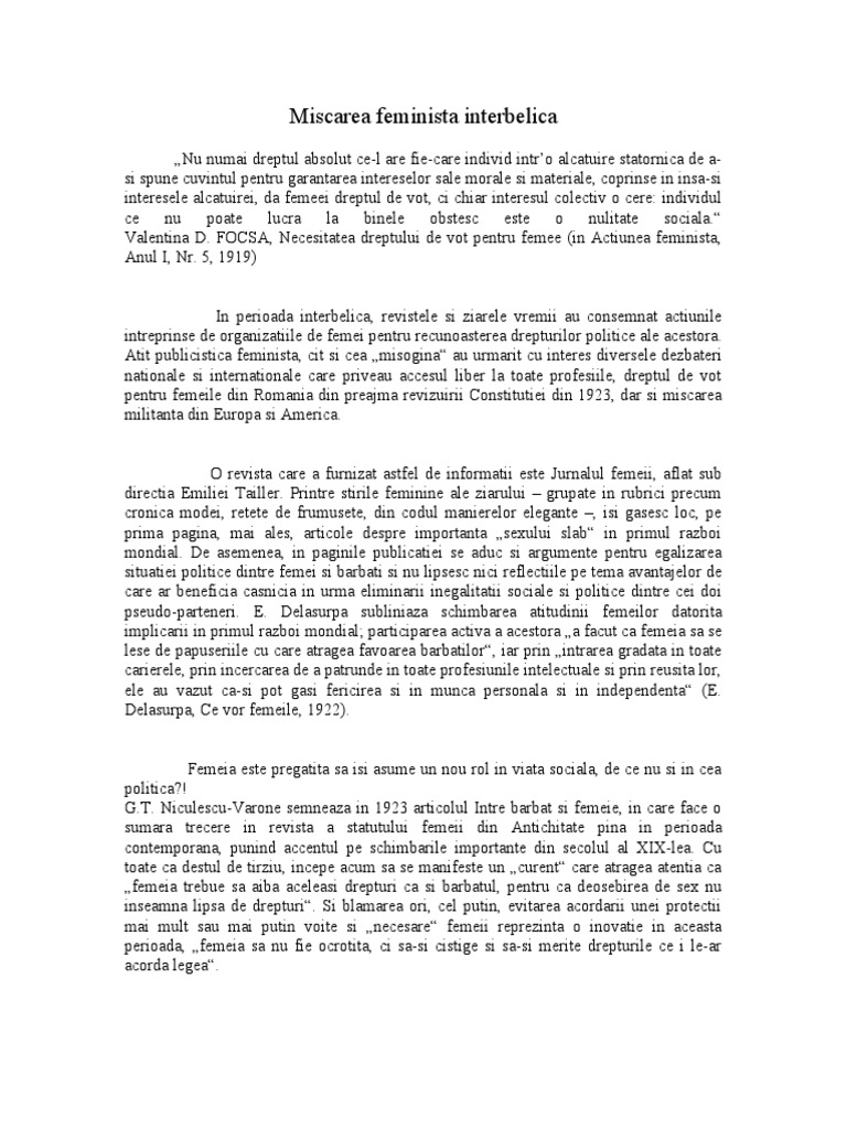 Figuri Emblematice In Miscarea Feminista Romana