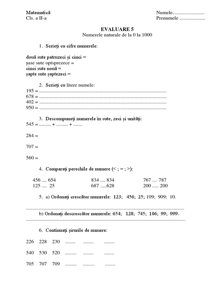 Test Numerele Naturale 0 1000