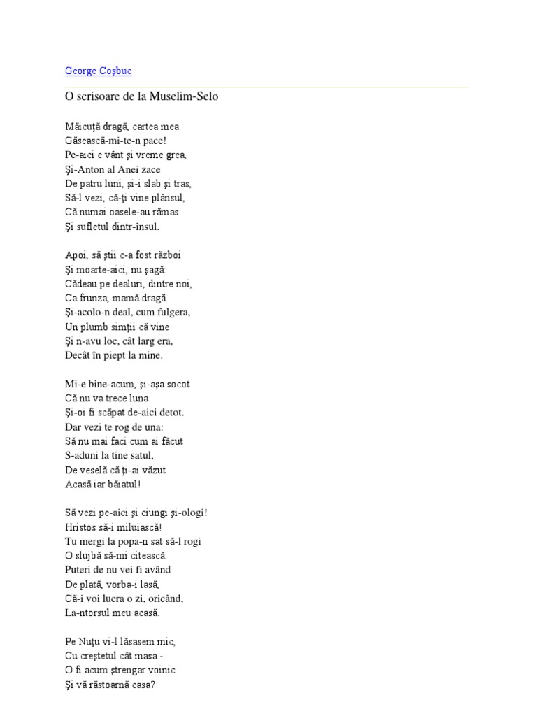 O Scrisoare De La Muselim Selo De George Cosbuc Anideșcoală Ro