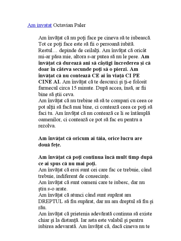 Am Invăţat De La Octavian Paler Bianca Ionel