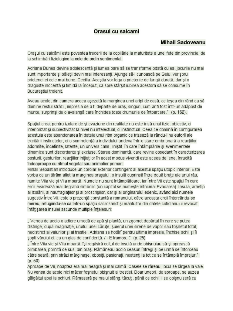 Orasul Cu Salcami Referat