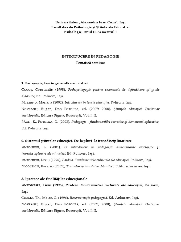 118943960 Tematica Introducere In Pedagogie Pdf