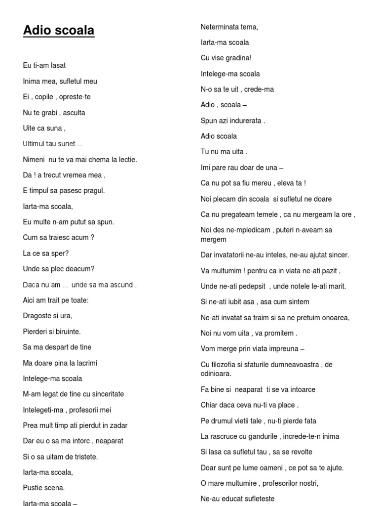 Poezii Despre Scoala Docx