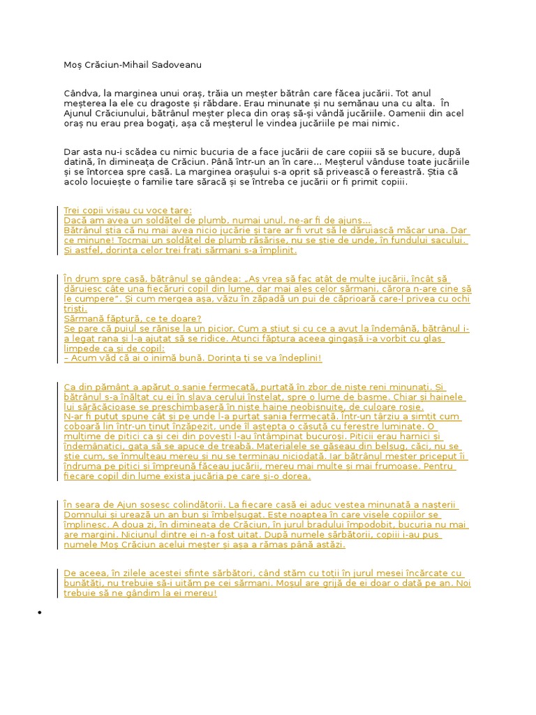 Povestea Lui Mos Craciun De Petru Demetru Popescu Pdf Document