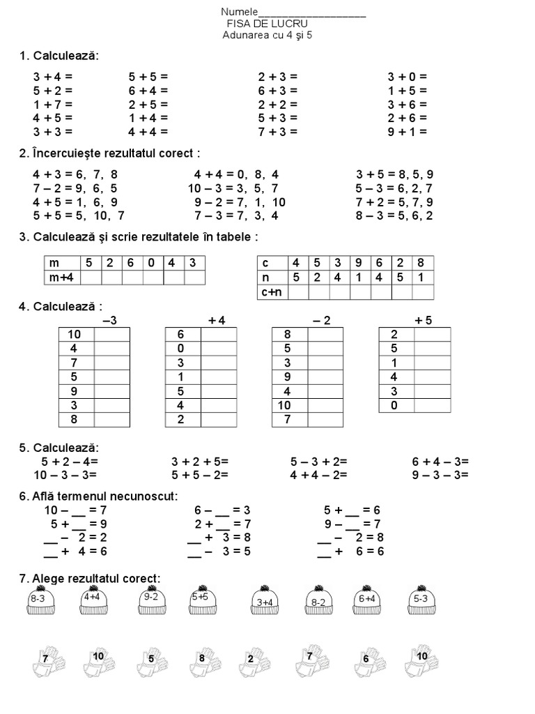 Exerciții De Adunare și Scădere 0 10 Materiale Didactice Matem