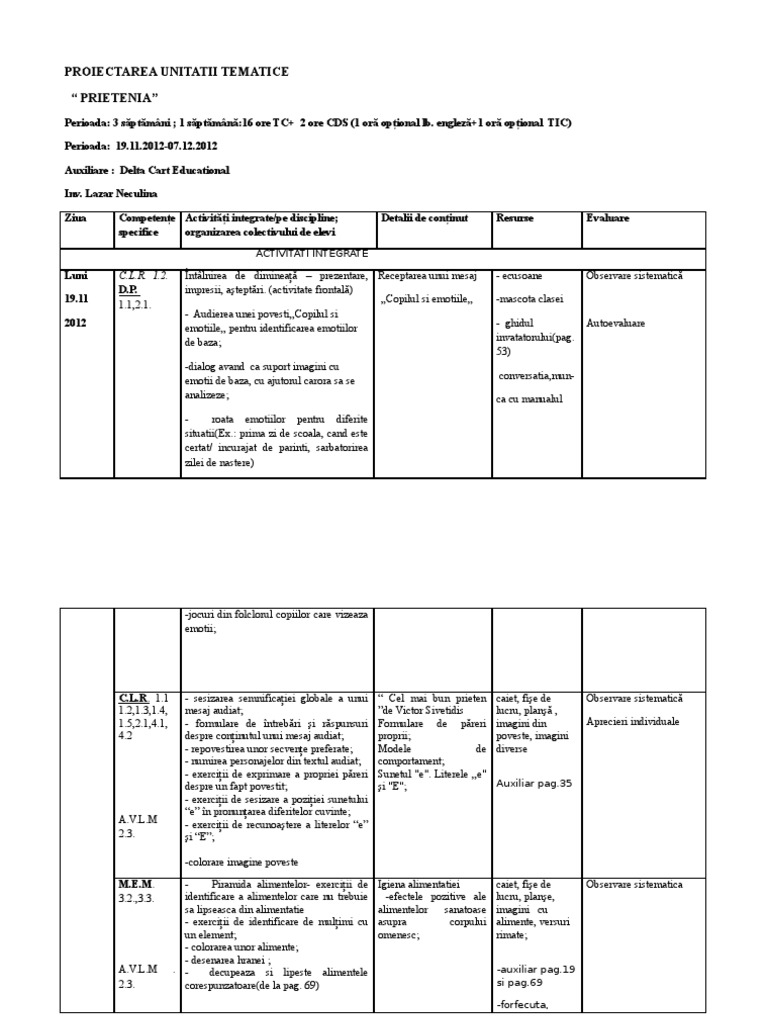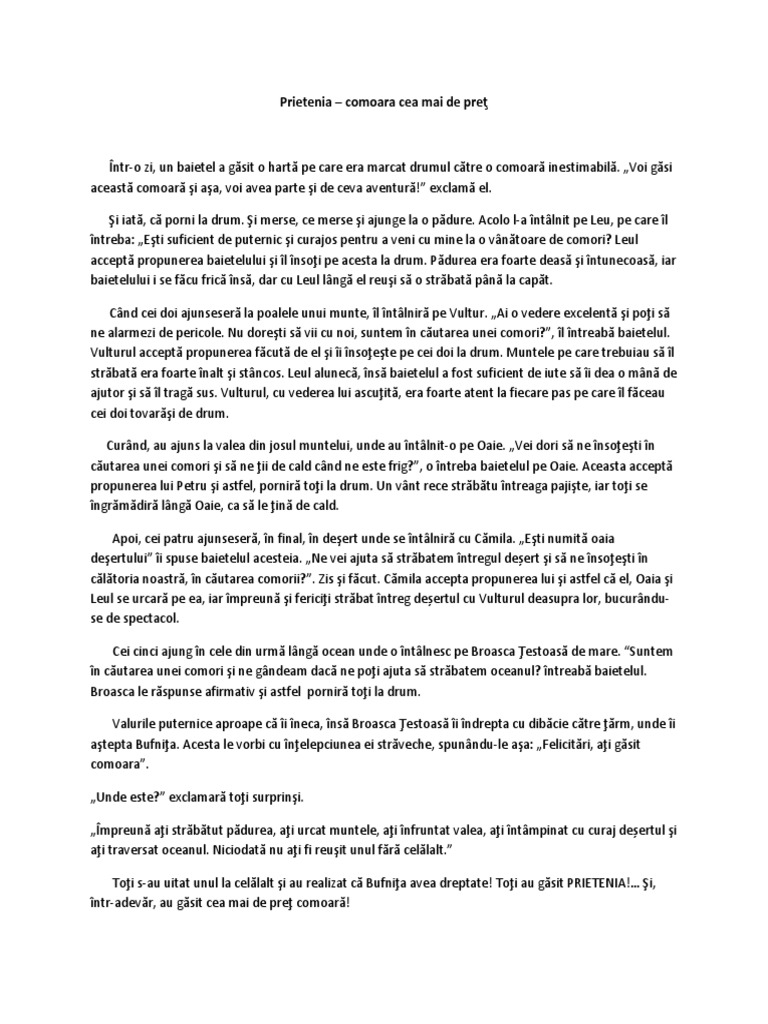 Proiect Didactic Prietenia Comoara Cea Mai De Pret