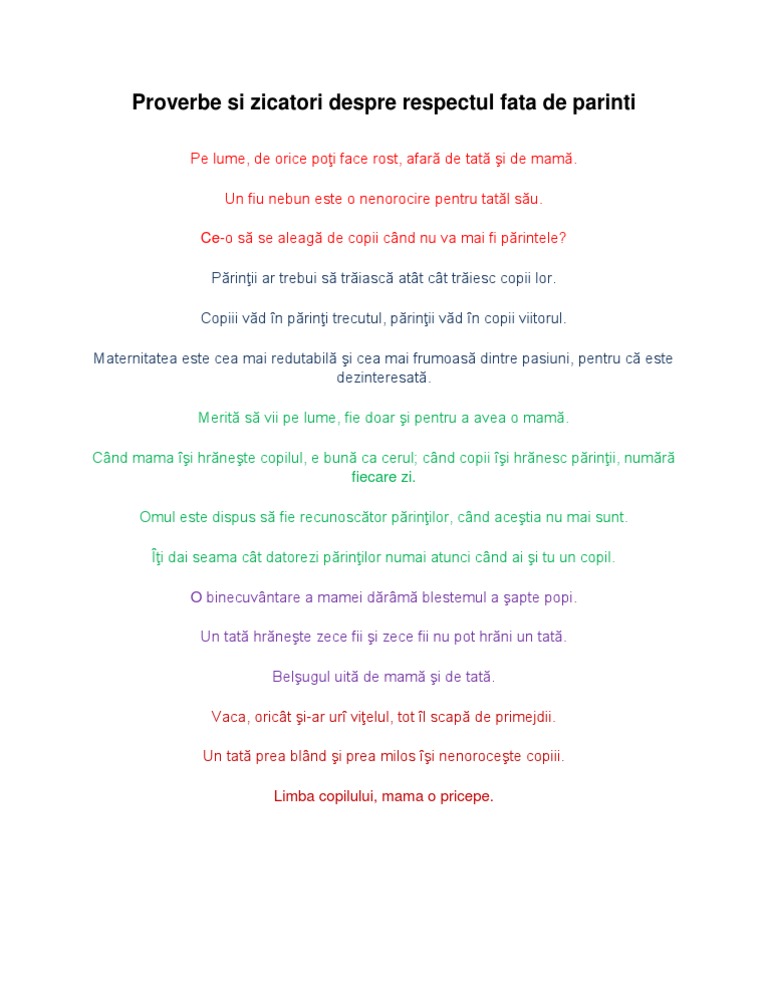 Proverbe Si Zicatori Despre Respectul Fata De Parinti