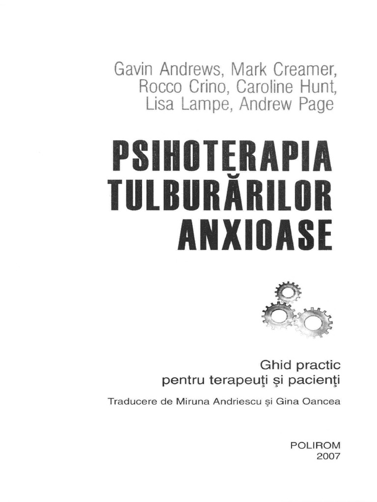 Psihoterapia Tulburărilor Anxioase Ghid Practic Pentru Terapeuti Si Pacienţi Caroline Hunt Gavin Andrews Lisa Lampe Mark Creamer Rocco Crino Cartepedia Ro