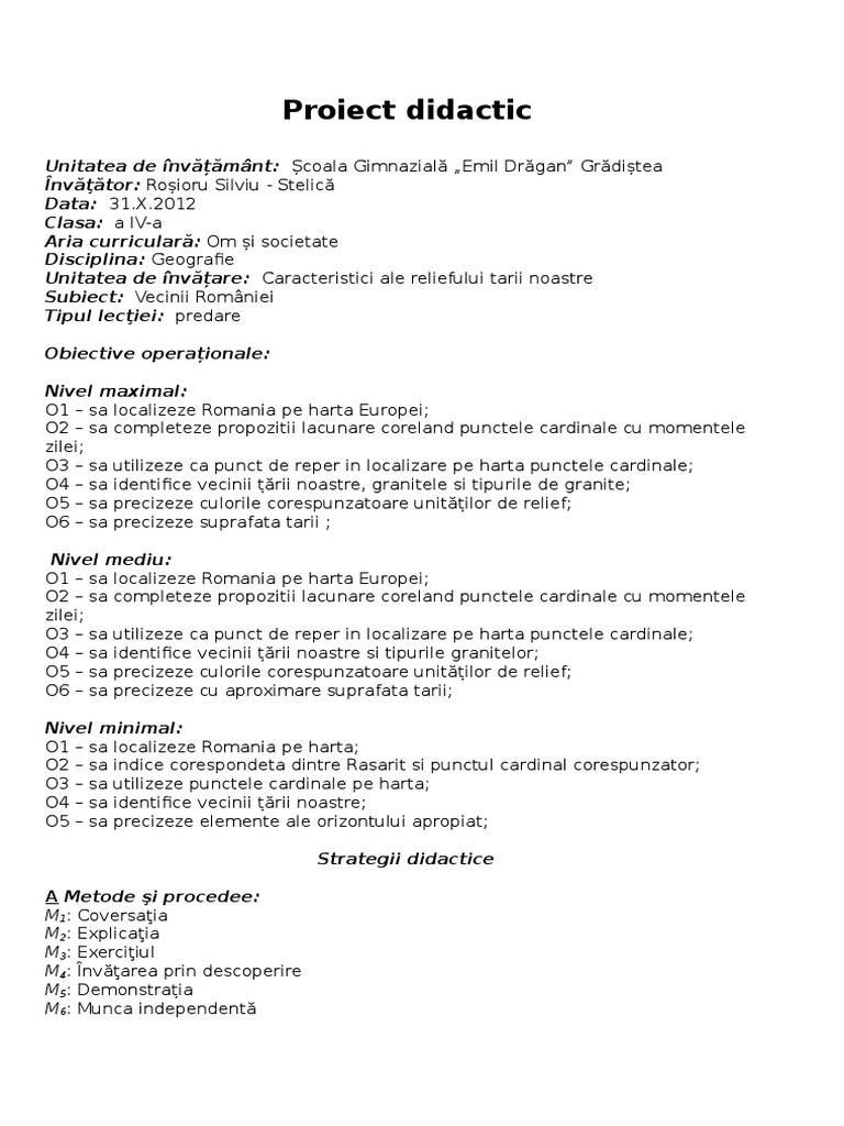 Proiect Didactic A Metode Si Procedee