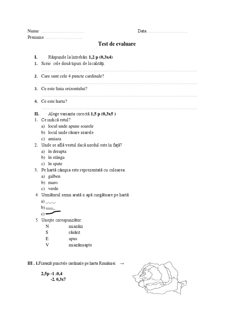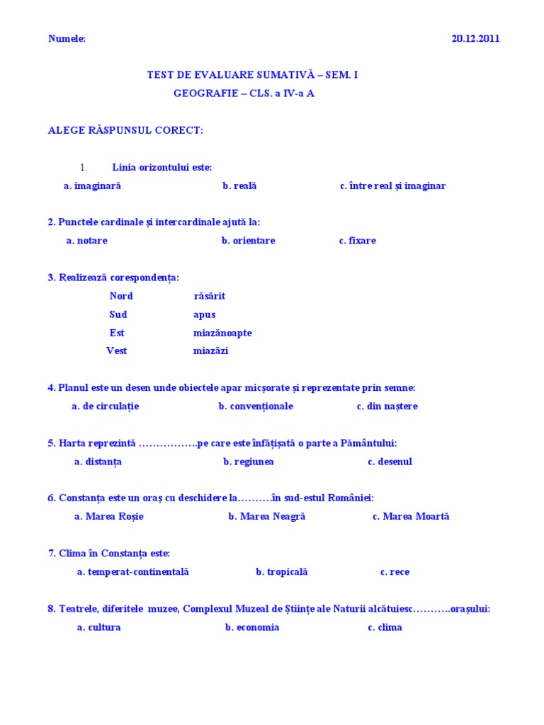 Test De Evaluare La Geografie