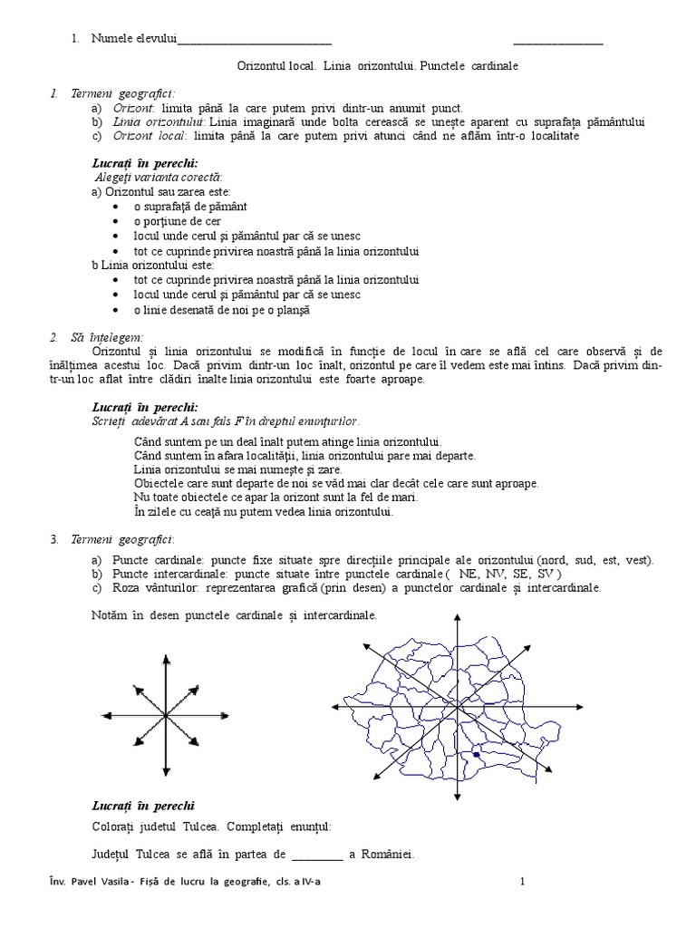 Orientare Pe Hartă Clasa Iv Dianapetculescu Geografie