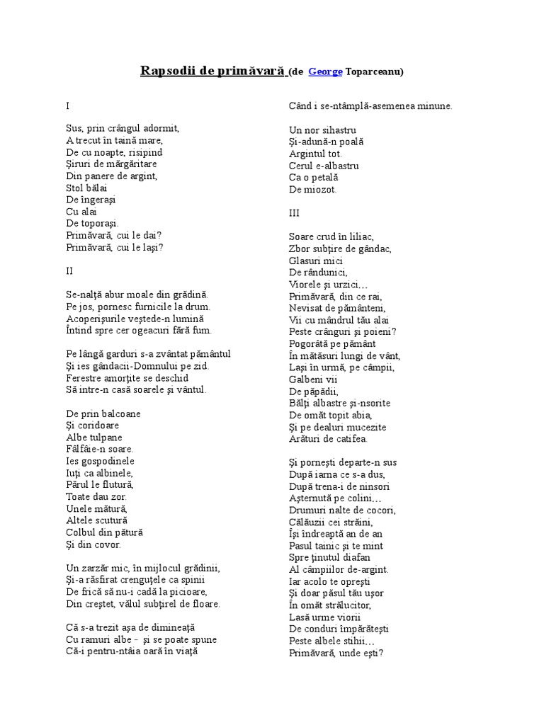Rapsodii De Primăvară De George Toparceanu Anideșcoală Ro