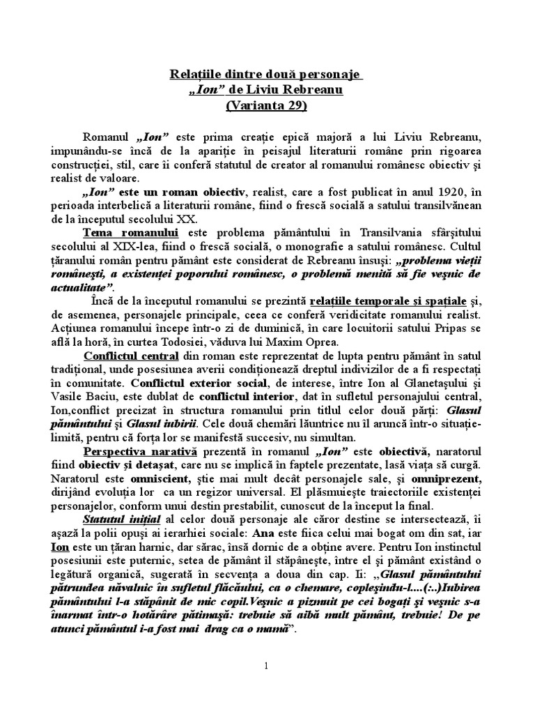 Comentariu Relatiile Dintre Doua Personaje Ion De Liviu Rebreanu 294499 Graduo